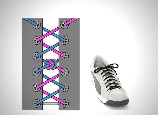 - Dhamaadka saxda ah ee xadhigga waxaa loo soo maraa godka sare ee ku dhereran, ka dibna la geliyo daloolka bidixda, halka dhinaca bidixda loo dhex maro godka isku midka ah, laakiin iyada oo la mid ah isla markaana isku mid ah ilaa sare.